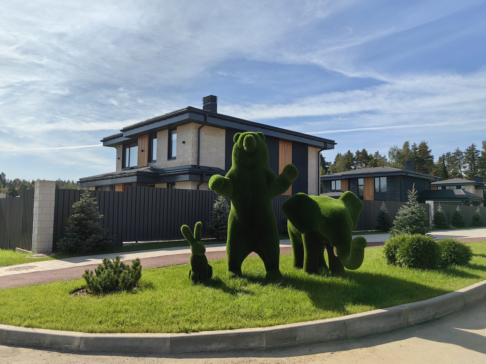 В поселке «Сходня Кантри Клаб» стараемся сделать так, чтобы было комфортно жить и окружение радовало глаз. В планах были зеленые декоративные животные при въезде на главную улицу поселка — уже сегодня они встречают всех жителей и гостей